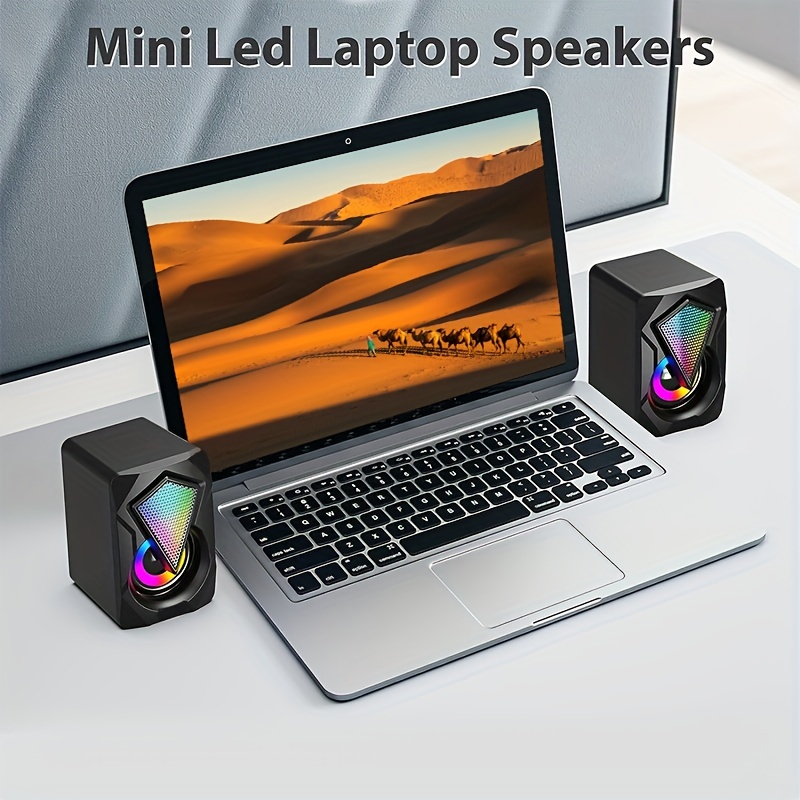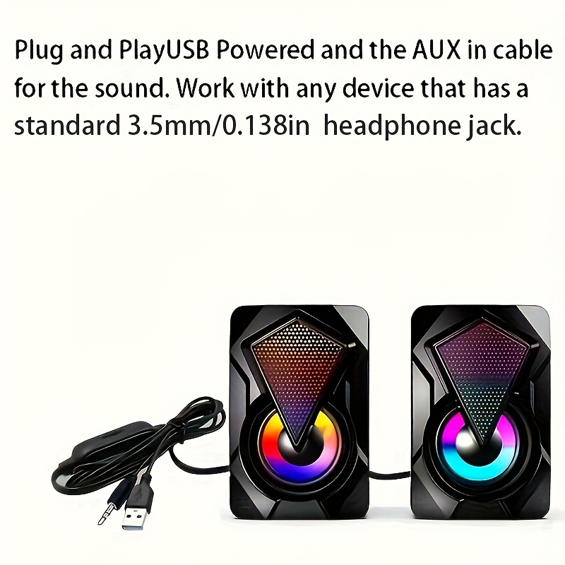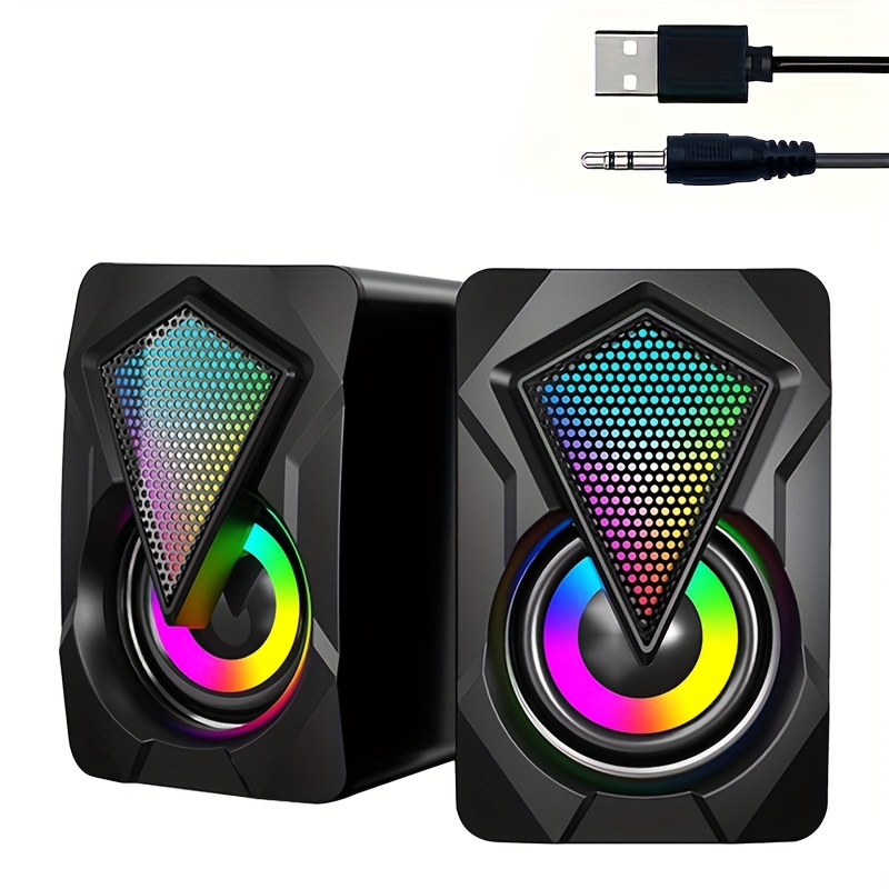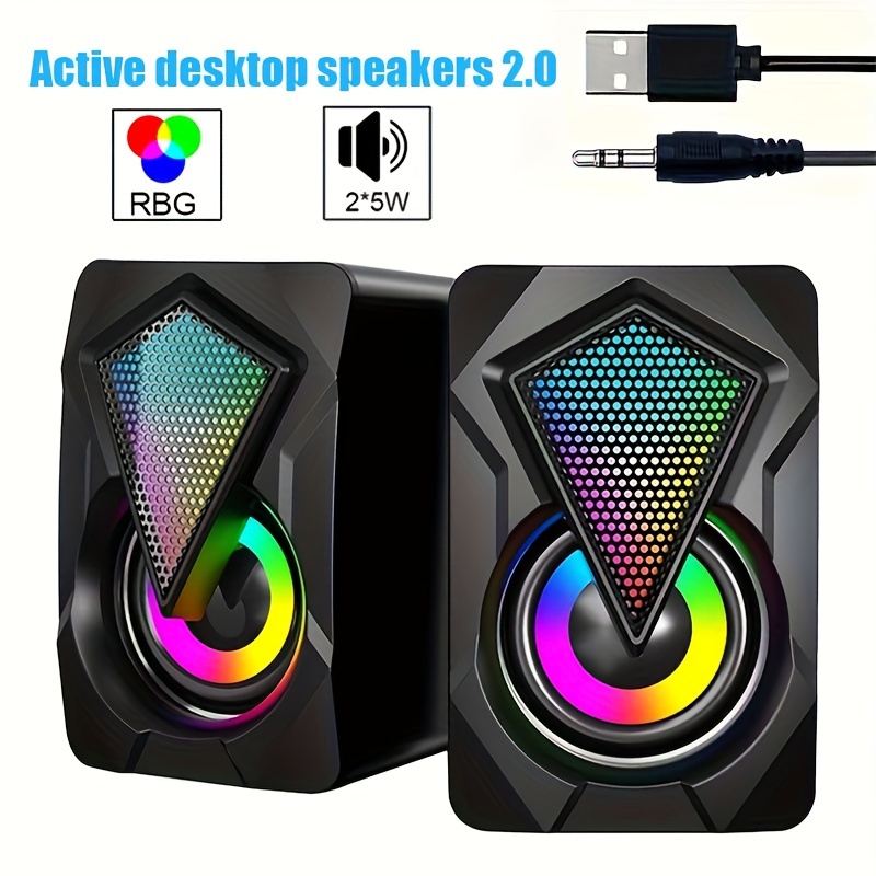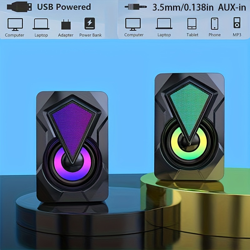 Desktop Computer Speakers 2.0 Multimedia Desktop Speakers USB Powered Laptop RGB Colorful Light Speakers Suitable for Desktop Computers Laptops Mobile Phones Tablets Projectors
