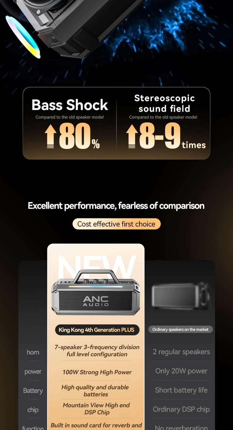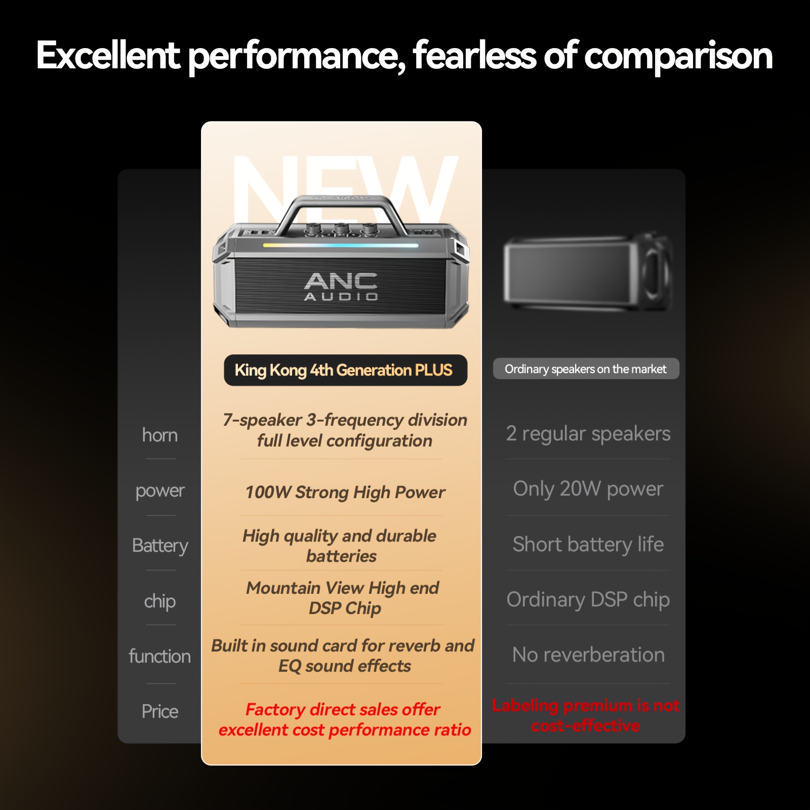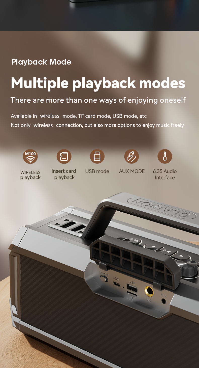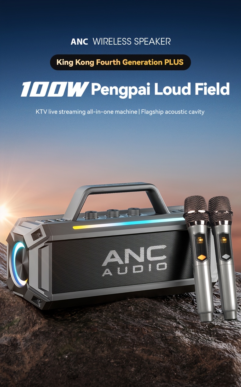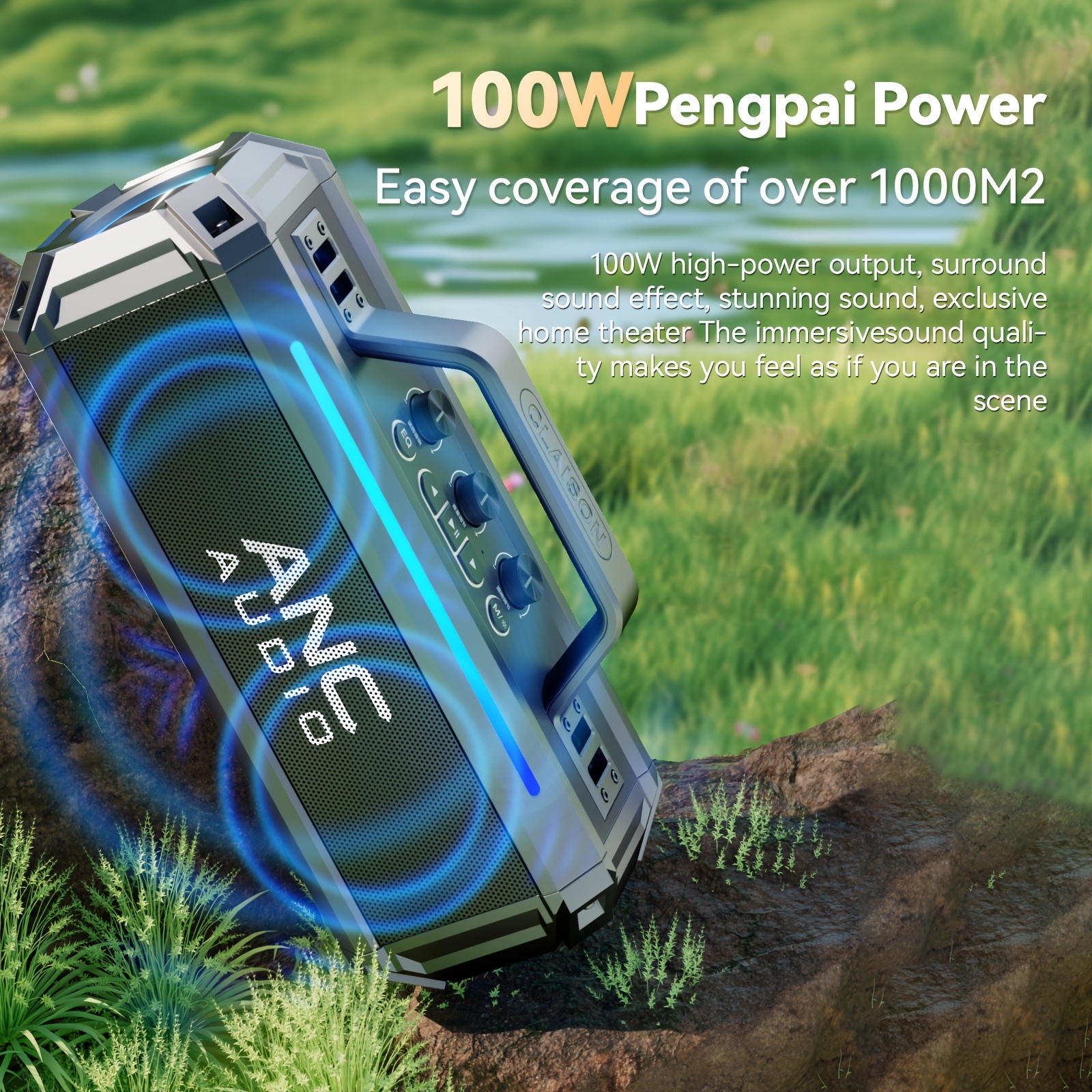 7-speaker Subwoofer, Dual Wireless Mic, 12 Hours RGB Atmosphere Light, Outdoor, FX EQ, U Disk, TF Card, AUX, Beautiful Voice, One-key Mute