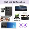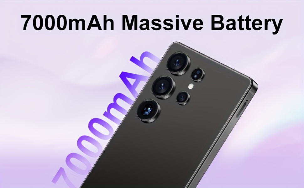 Battery 7000mAh 8+256GB 7-inch HD Screen Android 14 Smartphone, Face ID/5G/Fingerprint Lock/Dual SIM/GPS (Black)