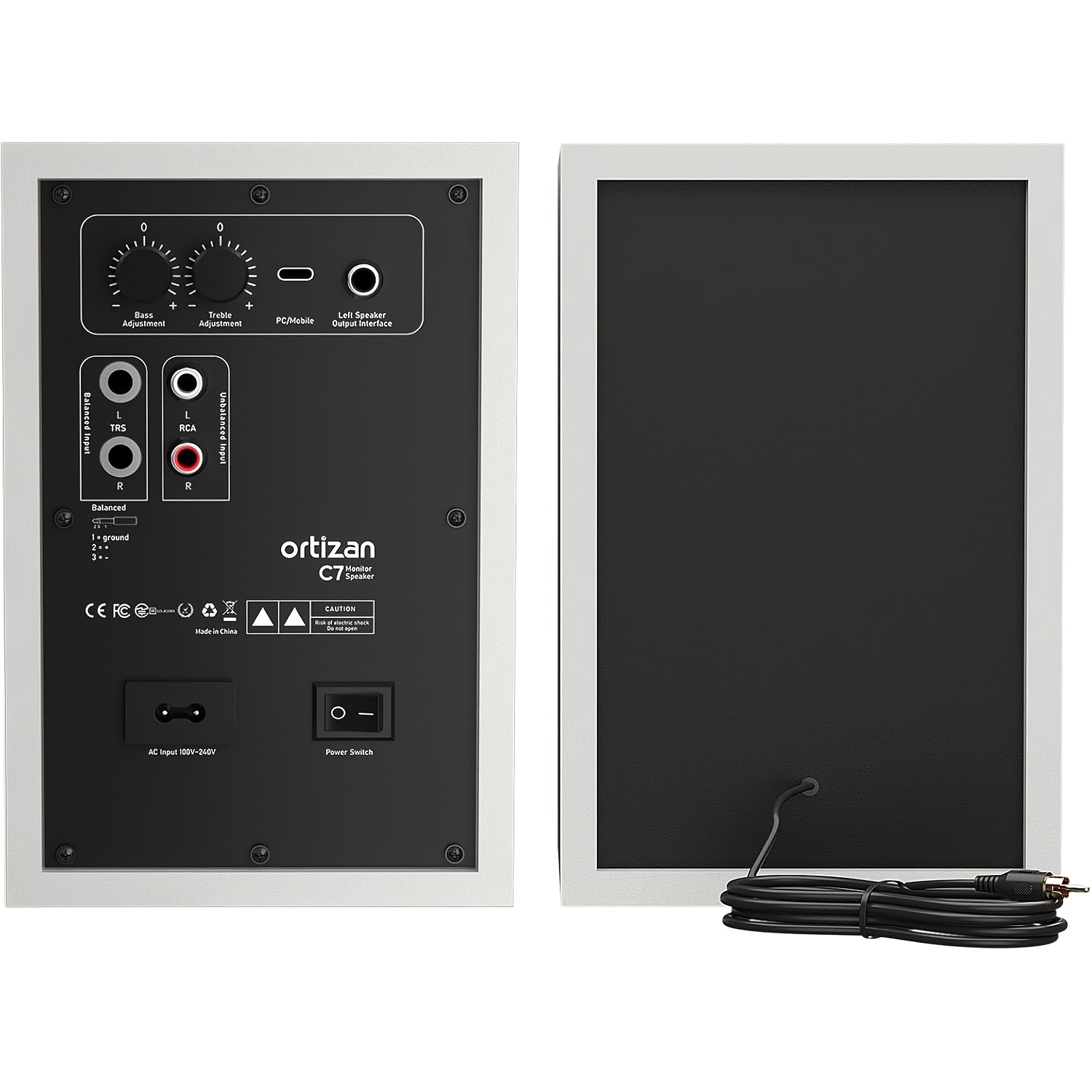 Wireless 5.3, 2.0 Recording Studio Monitor, Active Monitoring Speaker for Near-field Music Production. Pair, White/Black, ORTIZAN