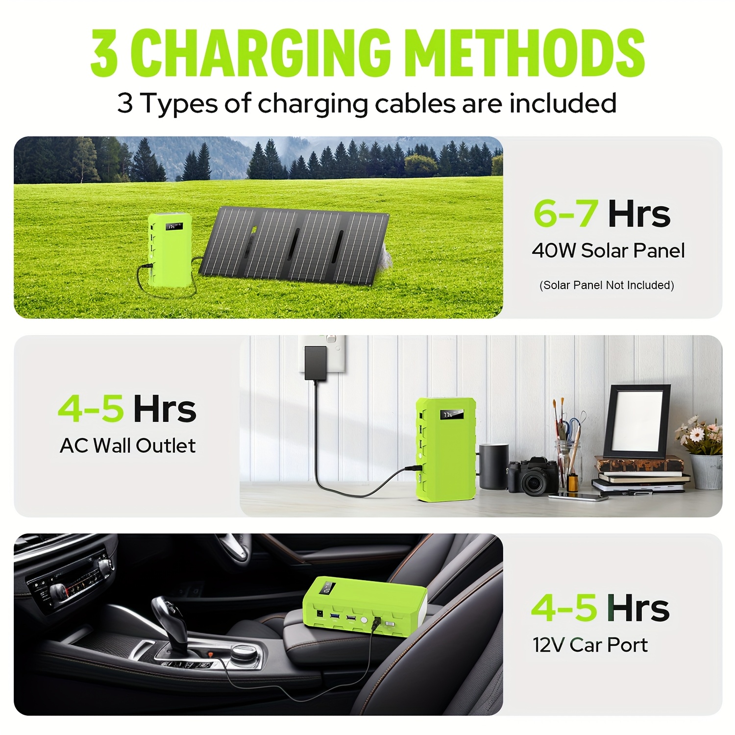 24000mAh Battery, LED Lights & AC Outlets – Durable ABS Compact Design for Outdoor Camping, Hiking, Road Trips, Cycling, Home Emergency, Hurricane Backup, Solar Phone Charger, Hiking Essentials, Vibrant Design, Robust Construction
