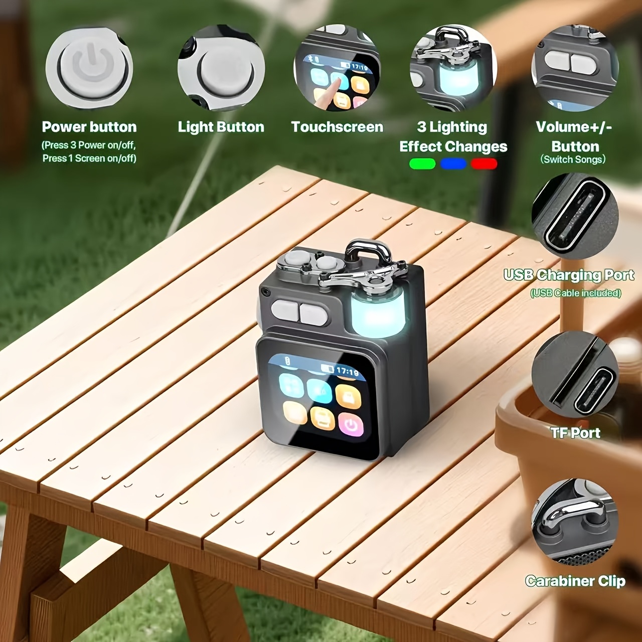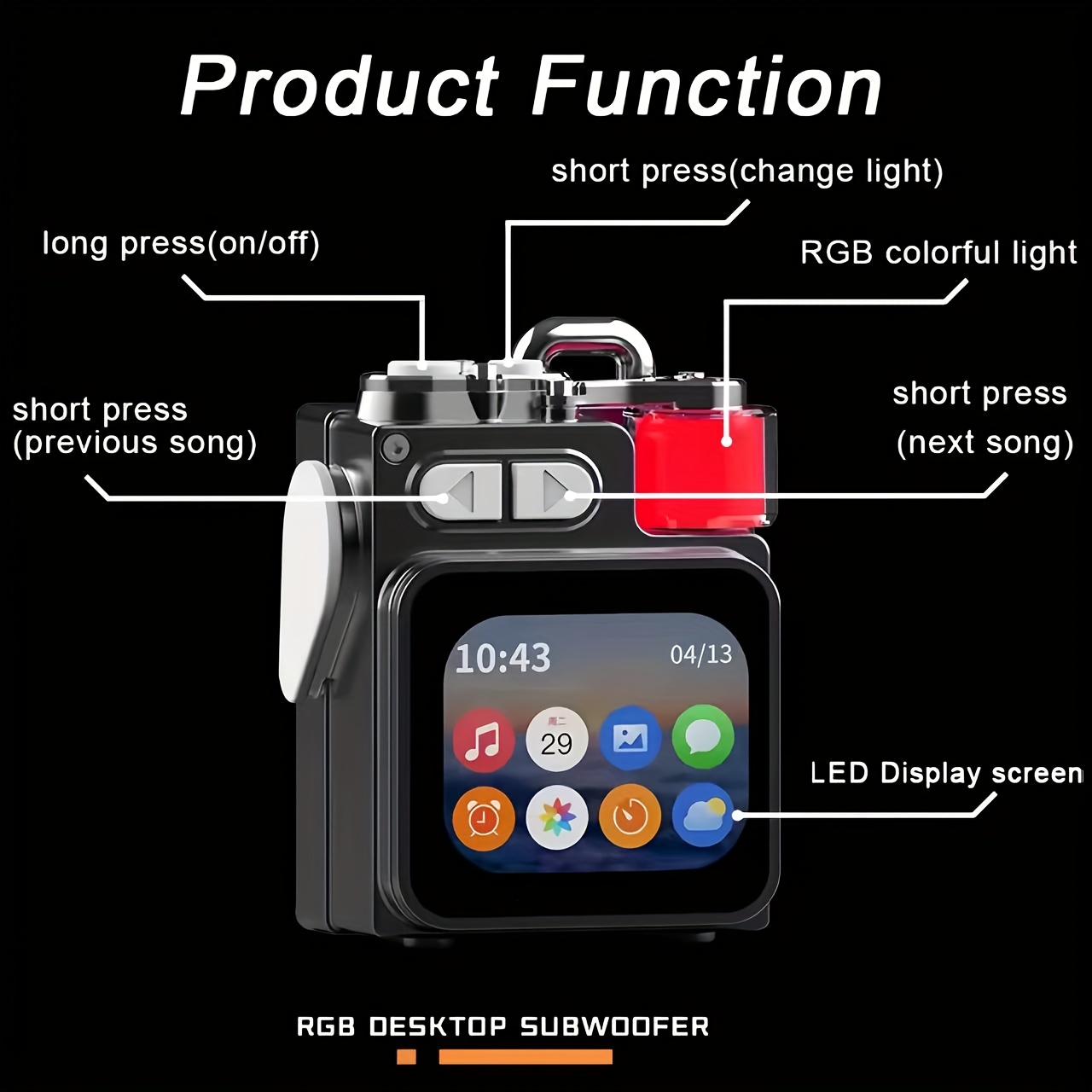 Speaker With LED Screen Display, Small Mini Shower Punchy Bass Speaker, RGB Lighting Effects, Wireless Stereo Pairing, Wild Mini Rugged Travel Outdoor Speaker, Metal Wild Cool Look, For Travel Home Shower Party Beach Camping Hiking.