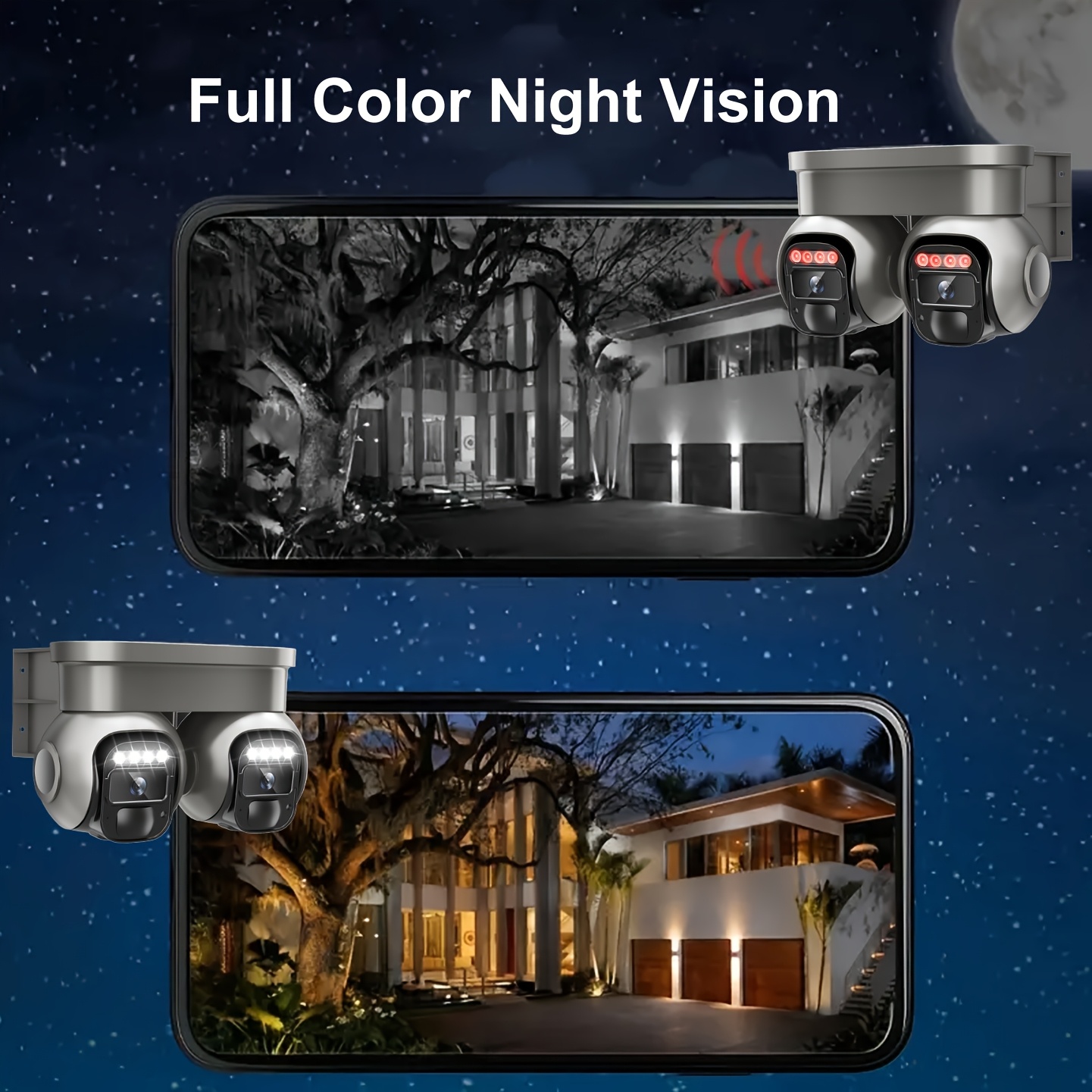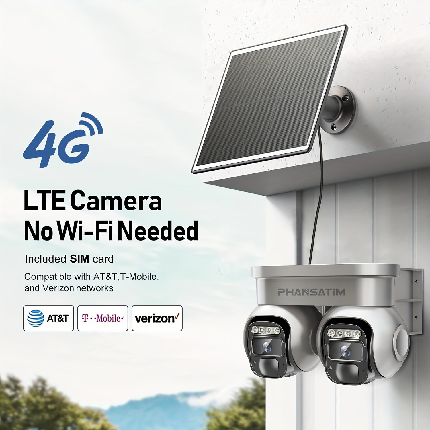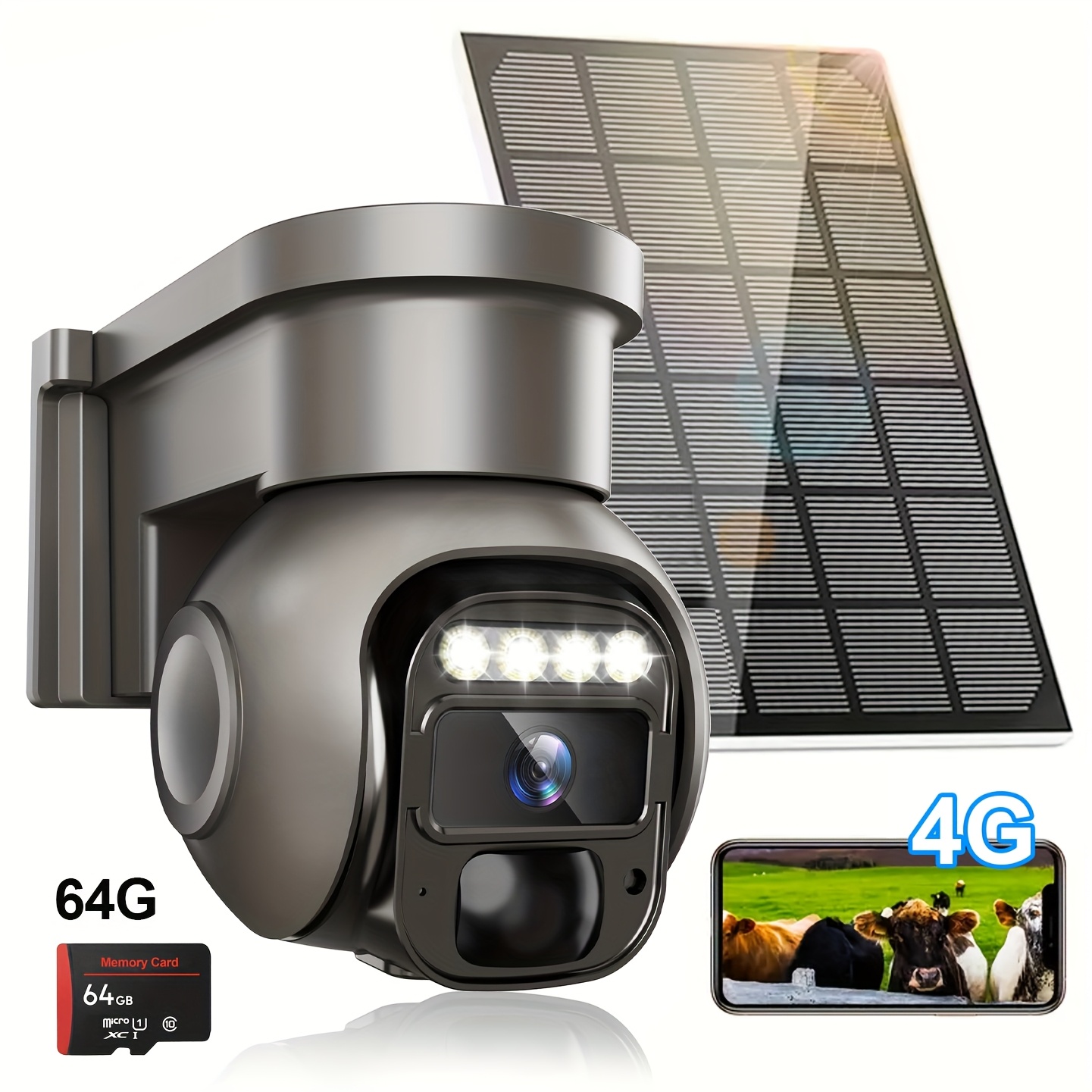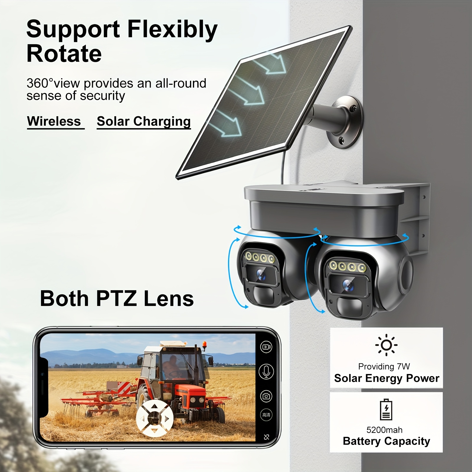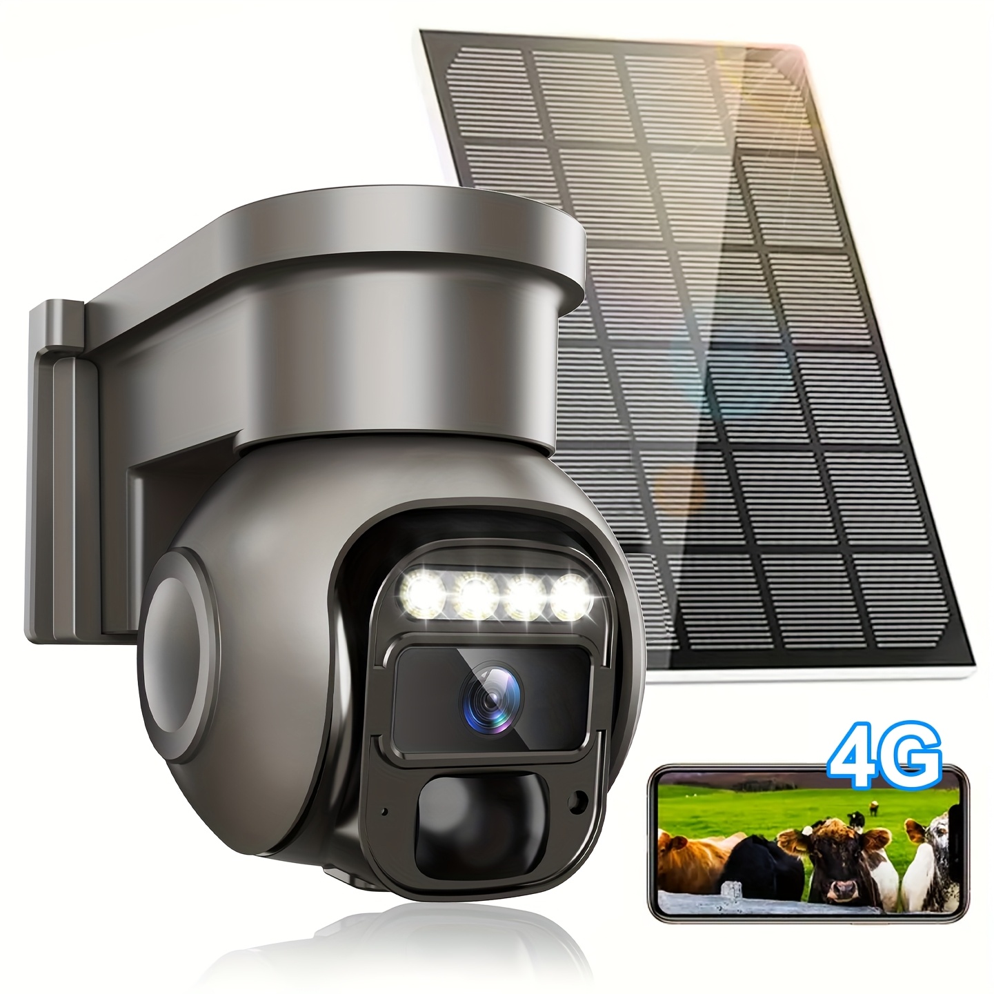 Non Wifi Security Solar Outdoor Camera Wireless for Home Surveillance, Dual Lens 360ยฐ PTZ Motion Detection, Built-In SIM Card, LED Lights, And App Control for Home Surveillance, Solar Outdoor Security Camera, Modern Aesthetic, Durable Construction