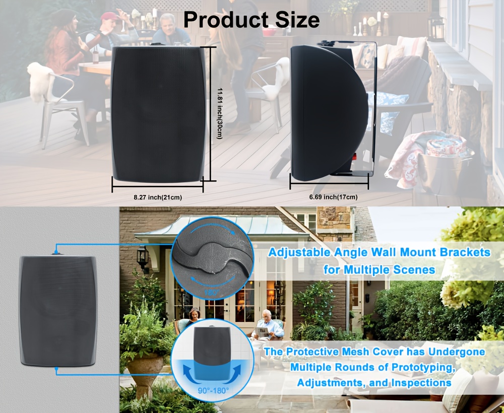 Wired 2 Way Wall Mounted Speakers with Powerful Bass for Patio Home Indoor Poolside Deck Backyard (Pair, Black)